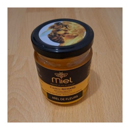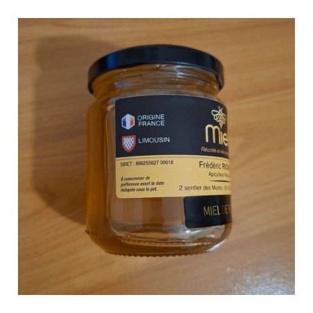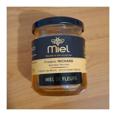 Miel de fleurs du Limousin, récolté, extrait et conditionné sur l'exploitation. Apiculteur - Frédéric Richard de Saint Gence (Haute-Vienne).